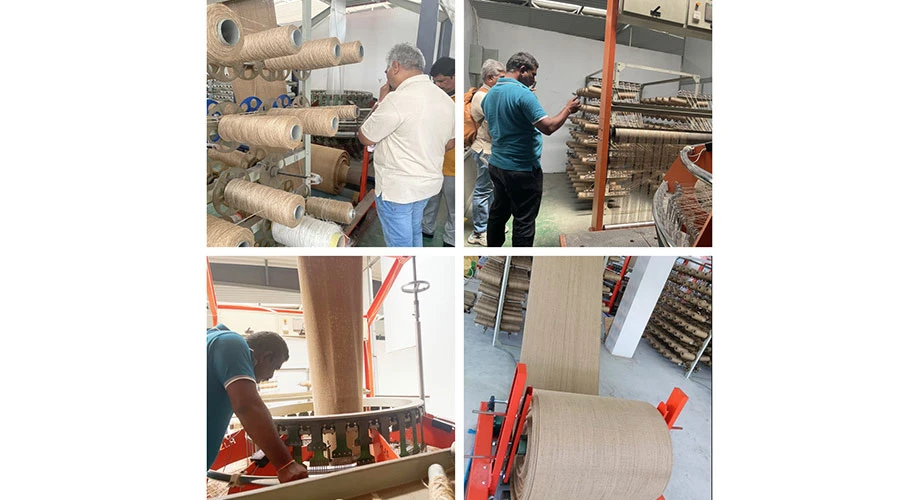 Showing and Discussing the jute bag production line with India friends!